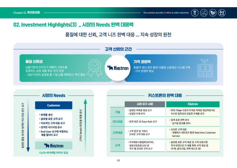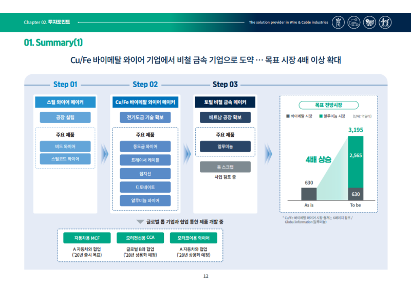 • 특히 케이블 와이어 부문은 품질 경쟁력을 기반으로 글로벌 주요 거래처와의 협력 관계를 지속 확대할 계획.