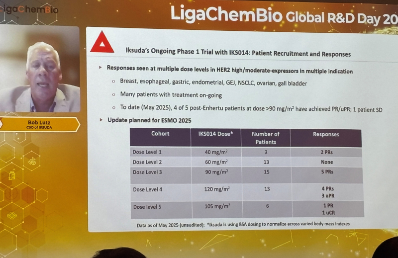 MMAF 페이로드 사용 HER2 항체-약물접합체(ADC) ‘IKS014’, 엔허투 치료후 환자 5명서 부분반응(PR) 4명, 안정상태(SD) 1명으로 질병통제율(DCR) 100%