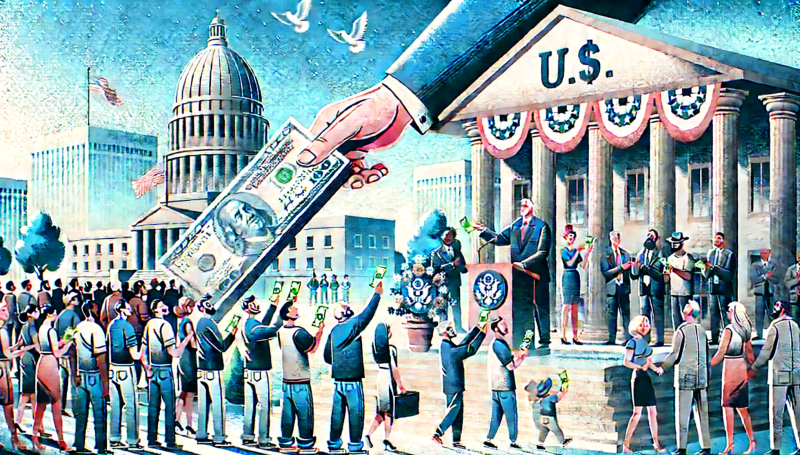 한편 미국 정부는 코로나19 대유행 당시 1인당 600달러를 지급한 바 있다. 당시에는 많은 가구가 소득을 잃거나 일할 수 없는 상황이여서 지급이 진행된 것이지만, 현재는 트럼프 행정부의 관세 정책이 미국인들의 물가 부담을 크게 증가시켰다는 지적도 존재한다.