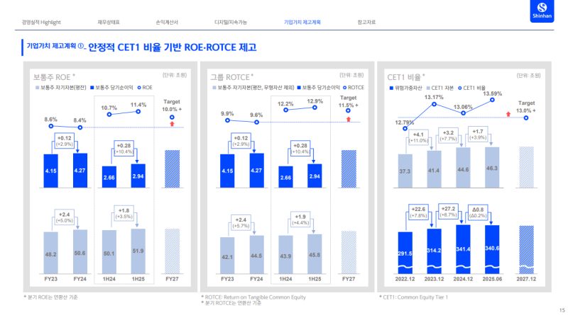 ◆ ROE(상반기) 11.4%, ROTCE(상반기) 12.9%