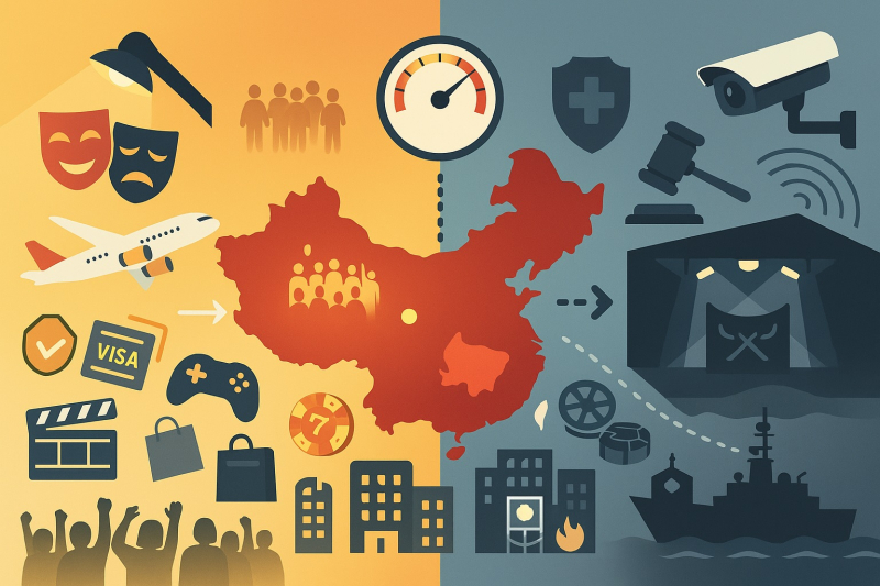 ▲정치: ‘3S(스크린·스포츠·섹스)’에 해당하는 오락·경기·공연을 통해 불만을 분산. 문화·관광·게임의 ‘선택적 허용’이 늘고, 사안별 허가 중심으로 정책 불확실성은 남기되 체감 완화를 유도. Xinhua가 밝힌 서비스·문화 분야 개방 확대 기조와 맞닿아 있다.