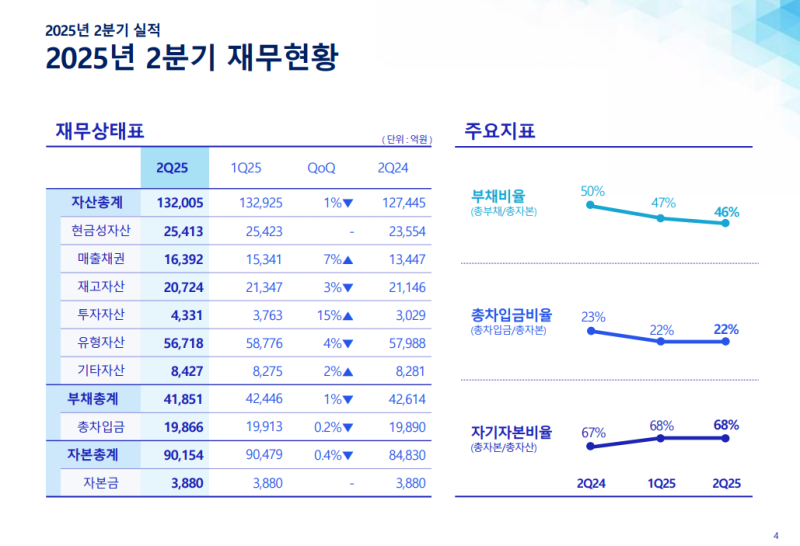 • 자본총계 : 9조 154억 (QoQ -0.4%)