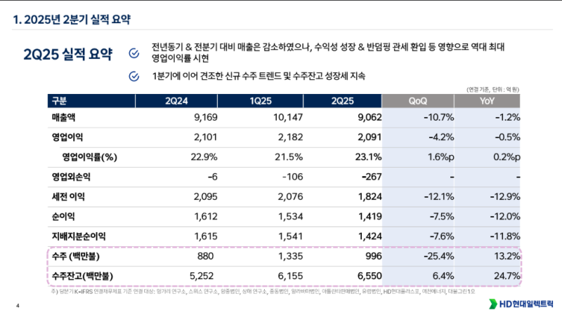 하반기 납기 증가에 따른 매출 확대, 친환경 전력기기 확장, 고객사와 협상 통한 관세 부담 완화