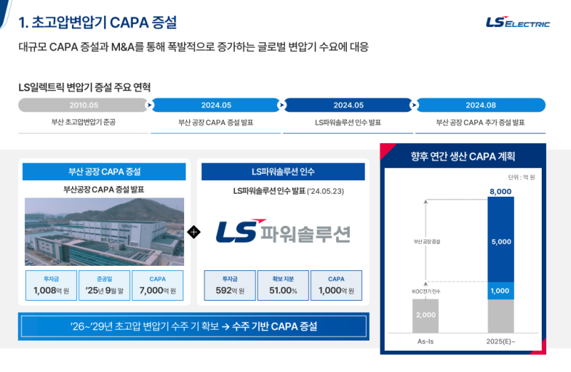 ESS는 美 JV 통해 내년 하반기 성과 기대, HVDC는 부산 공장 증설 연계