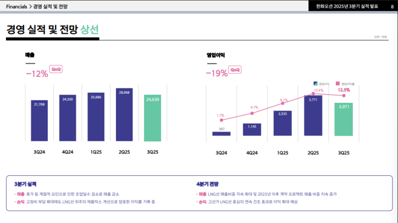 • 2025년 4분기 진행 공사 인도 영향으로 매출 소폭 감소 예상