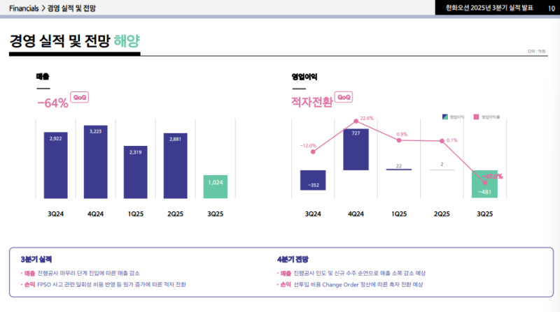 • 해양 부문은 FPSO 윈치 사고로 약 250억 원 일회성 비용 반영