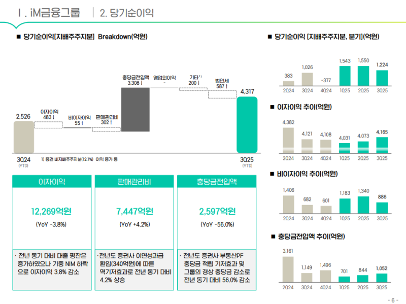 • iM뱅크 : NIM 1.82%로 반등, 충당금 감소에 힘입어 순이익 3,666억 원 (YoY +7%)