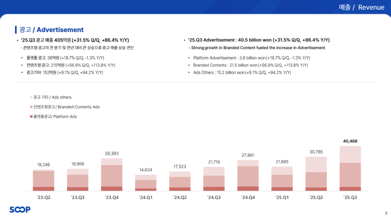 • 콘텐츠형 광고 매출: QoQ +57%, YoY +114%