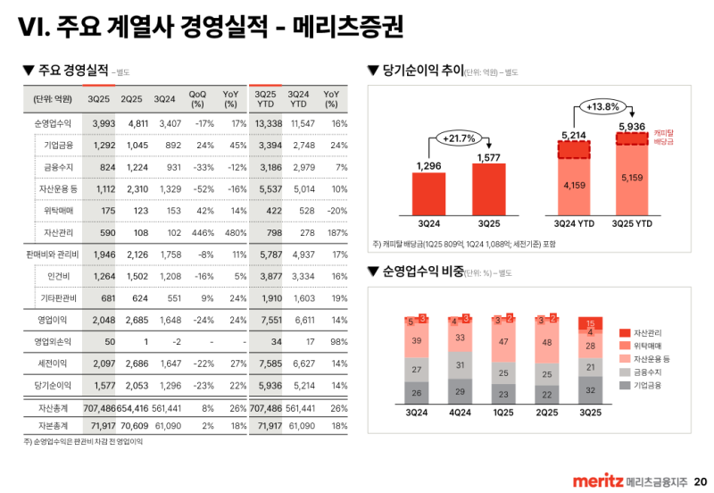 • 3분기 누적 순이익 2조 원 돌파, ROE 25.9%로 업계 압도적 상위권 유지