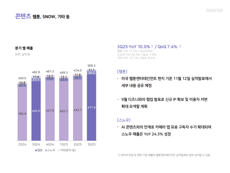 • 스노우 매출 전년 동기 대비 +24.3% 증가, AI 콘텐츠 연계 및 카메라 앱 유료 구독자 확대 영향