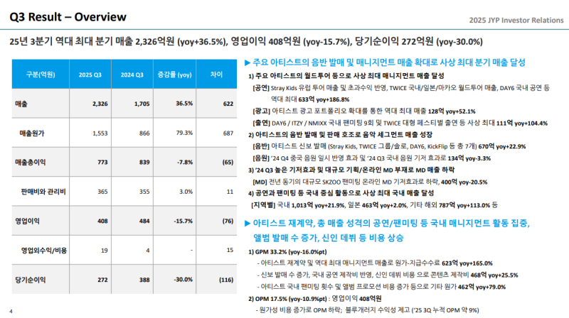대형 아티스트 중심의 해외 투어·앨범 모멘텀 확대와