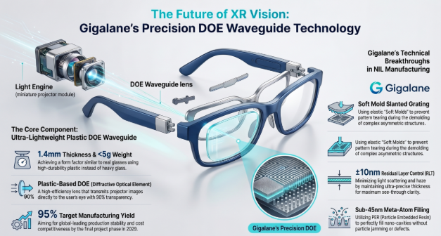 기가레인은 NIL 공정을 활용한 'DOE(회절광학소자) 웨이브가이드(Waveguide)' 제조에 집중한다.