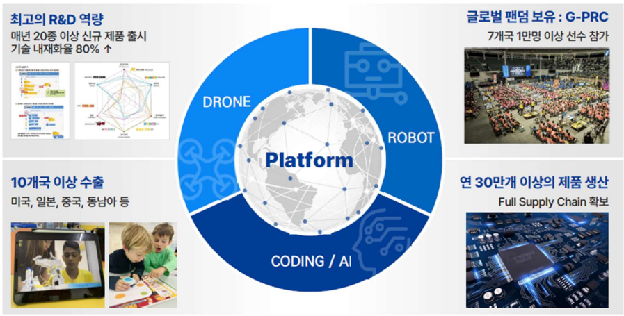 글로벌 드론 로봇 대회 G-PRC, 코딩 교육 로봇 비누 등으로 생태계 확장10년 넘게 G-PRC를 운영해 오고 있다는 점도 이 기업의 특장점이다.