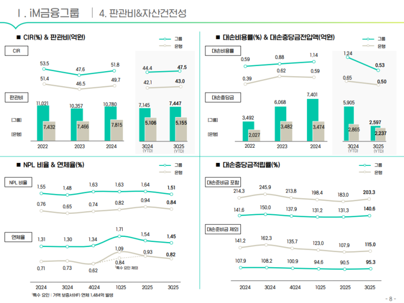 • iM뱅크 : NIM 1.82%로 반등, 충당금 감소에 힘입어 순이익 3,666억 원 (YoY +7%)