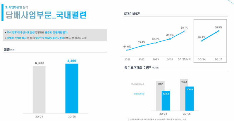 • 추석 연휴 대비 선수요 영향과 M/S 확대 영향으로 견조. 3Q25 M/S는 68.9%(YoY +1.5%p) 시현