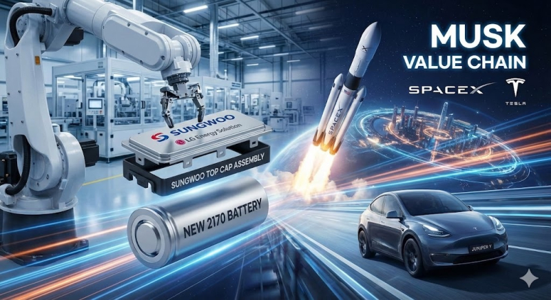 일론 머스크가 이끄는 스페이스X의 상장이 초읽기에 들어가며 전 세계 자본시장의 이목이 쏠리고 있다. 이러한 가운데 국내 정밀 부품 기업 성우가 LG에너지솔루션을 통해 스페이스X와 테슬라 양측에 핵심 배터리 부품을 공급하는 '수위 공급자(Leading Supplier)' 지위를 확보한 것으로 확인돼, 머스크 밸류체인의 핵심 수혜주로 부상하고 있다.