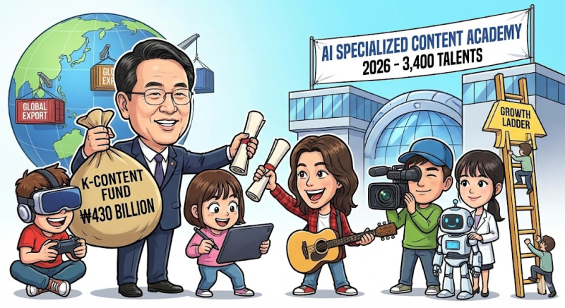 문화체육관광부(문체부)와 한국콘텐츠진흥원이 생성형 인공지능(AI) 확산 등 급변하는 콘텐츠 산업 환경에 대응하고 ‘K-콘텐츠’의 지속 성장을 이끌기 위한 ‘2026년 K-콘텐츠 인재양성사업’을 본격 추진한다.