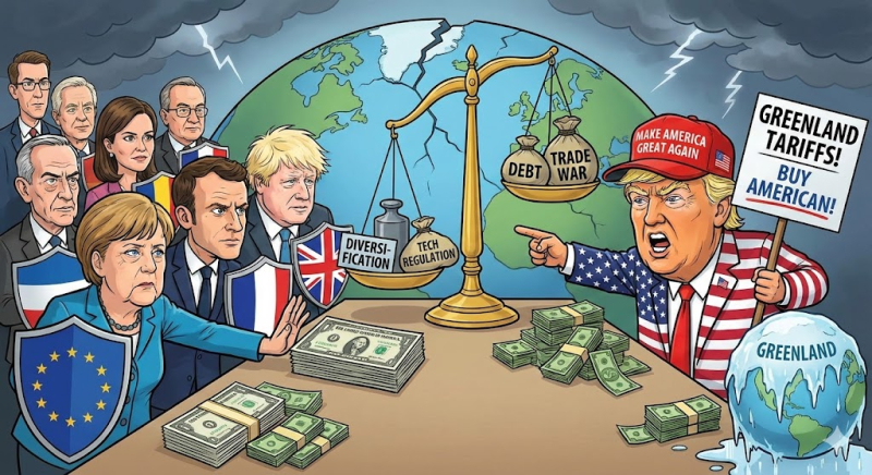 그는 미국의 그린란드 매입이 완료될 때까지 이 조치를 유지하겠다고 명시했다. 이에 대해 인사이트 엔베스트먼트 등 시장 전문가들은 많은 투자자가 주말 사이 벌어진 상황에 경악하고 있으며, 자산 보유 전략에 대해 깊은 고민에 빠졌다고 진단했다.