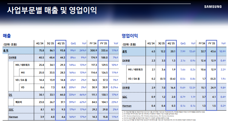 • 4Q25 전사 매출·영업이익 모두 분기 기준 역대 최대 기록