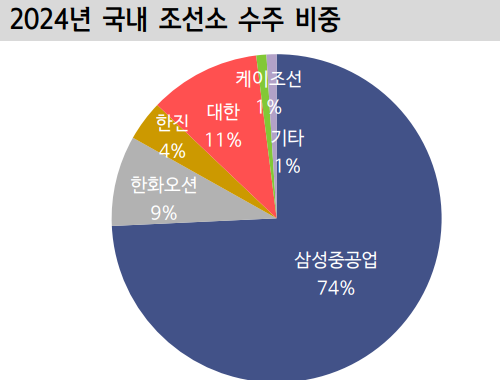 신한투자증권 리포트에 따르면 2024년 기준, 에스엔시스의 국내 수주 비중은 ▲삼성중공업 74% ▲한화오션 9% ▲HJ중공업 4% ▲대한조선 11% ▲케이조선 1%를 기록하고 있다.