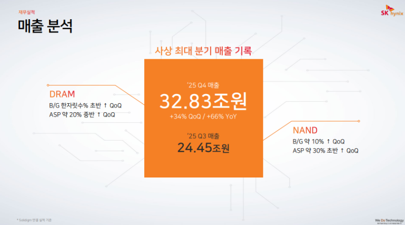 • 이러한 수급 환경을 바탕으로 4Q25 매출액은 32.8조 원 기록(QoQ +34%, YoY +66%)