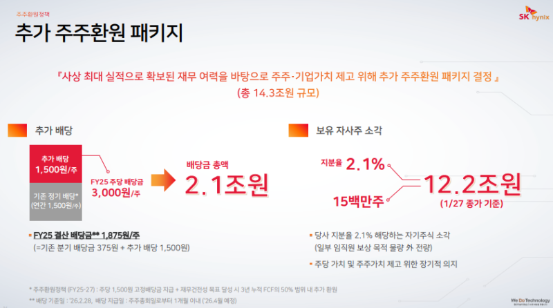 • 이에 따라 이사회는 2025년 사상 최대 실적으로 확보된 재무 여력을 바탕으로 주주 신뢰와 성원에 보답하고 기업 가치를 제고하기 위해 추가 주주환원 패키지를 결의