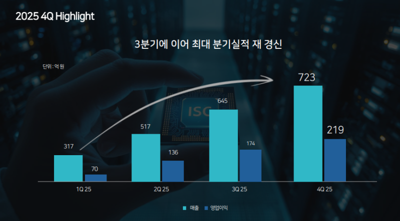 • 4분기 매출 723억 원, 영업이익 219억 원 기록