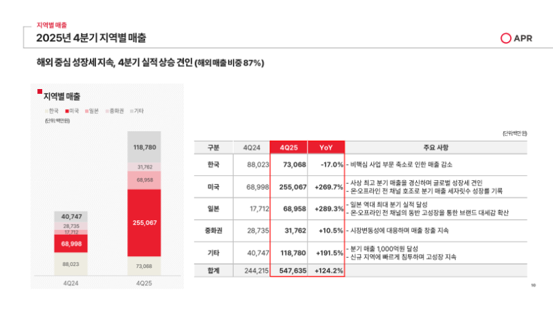 • 2025년 4분기는 해외 지역 전반에서 높은 성장률을 기록하며 해외를 중심으로 성장세가 지속