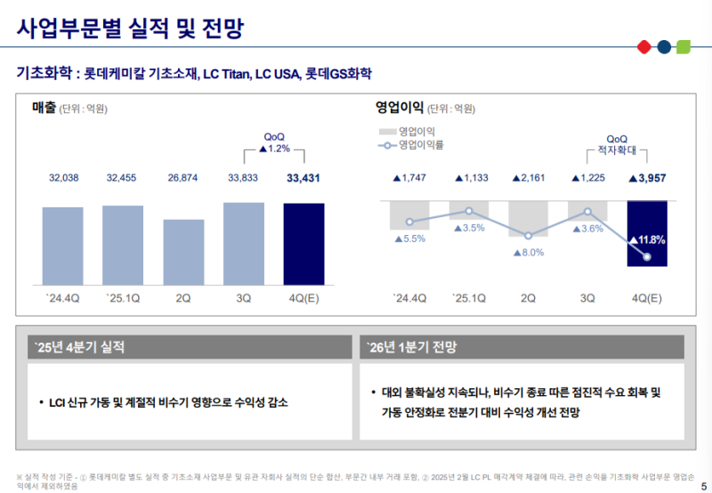 • LCI 신규 가동 및 계절적 비수기 영향으로 전분기 대비 수익성 감소