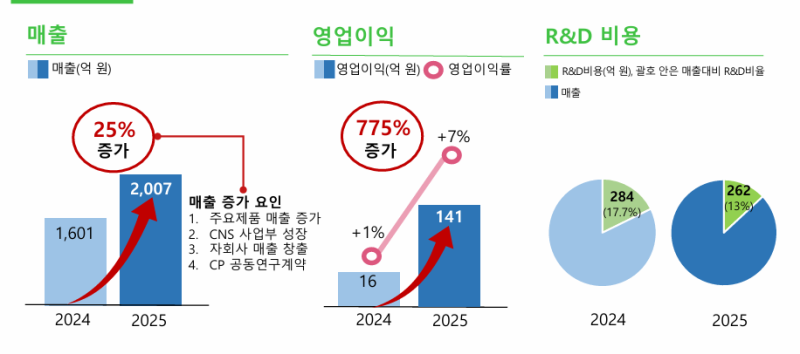 • 2025년 연결 기준 매출액 2,007억 원, 영업이익 141억원 기록