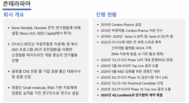 • 콘테라파마 임상성공과 룬드벡 공동연구계약 체결