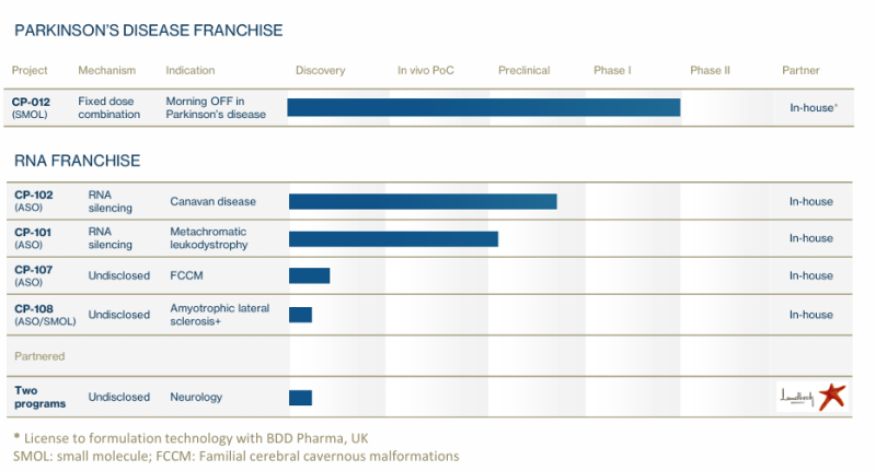 • 핵심 파이프라인인 'CP-012'는 파킨슨병 환자의 아침 무동증(Morning Off) 치료제로 개발 중