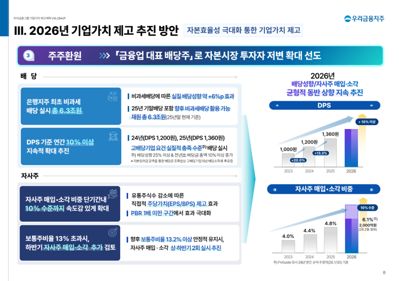 • 2026년 보통주자본비율 13% 초과 시 하반기 자사주 매입·소각 추가 실시 계획