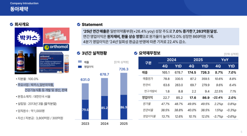 • 2025년 피부외용제 3종 및 신제품 성장으로 26.4% 성장
