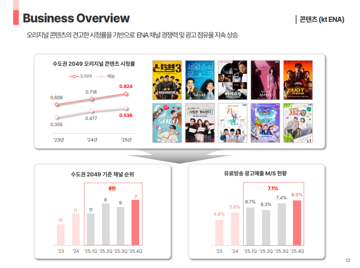 • KT ENA 콘텐츠 투자 효율화 추진에 따라 콘텐츠 관련 비용 구조 개선