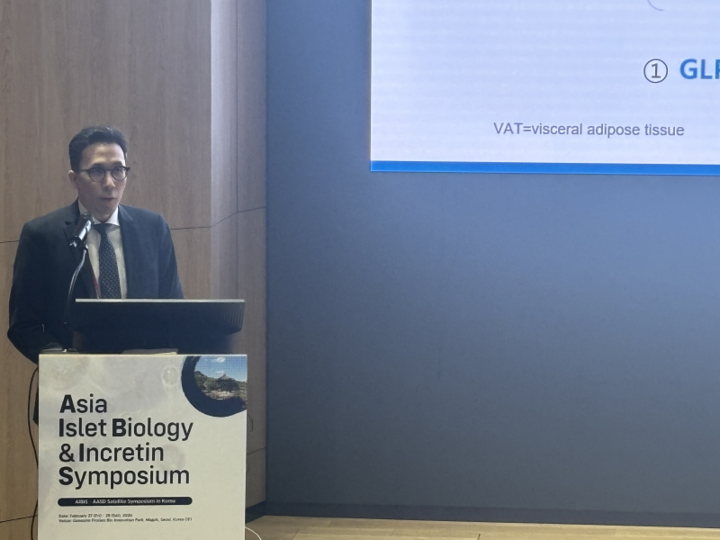 이승환 카톨릭대 교수는 27일 서울 마곡 제넥신-프로젠 사옥 건물에서 열린 AIBIS 2026 (Asia Islet Biology & lncretin Research Association) 행사에서 "이번 임상결과를 통해 월1회 투여군에서도 Hb1Ac를 약 1% 감소시켰고, 근육량을 약 1% 늘리며 월1회 유지요법 가능성을 확인했다"라며 이같이 밝혔다.
