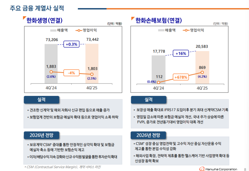 • 한화생명 및 한화손해보험 2026년 2월 23일 실적 발표 및 기업설명회 진행 예정