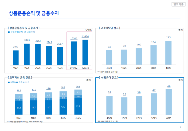 • 고객자산 운용 규모: 2024년 4Q 16.6조 원 → 2025년 4Q 20.3조 원으로 증가