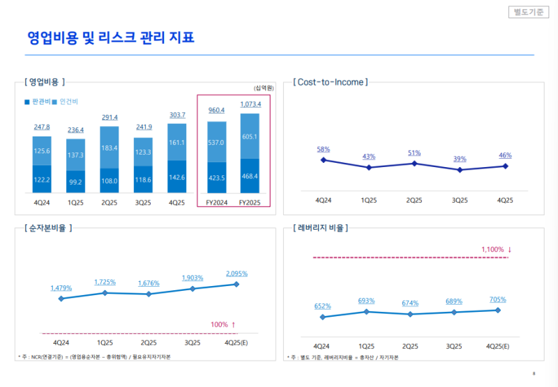 • 고객 예탁금 잔고: 2024년 4Q 9.6조 원 → 2025년 4Q 15.3조 원으로 증가
