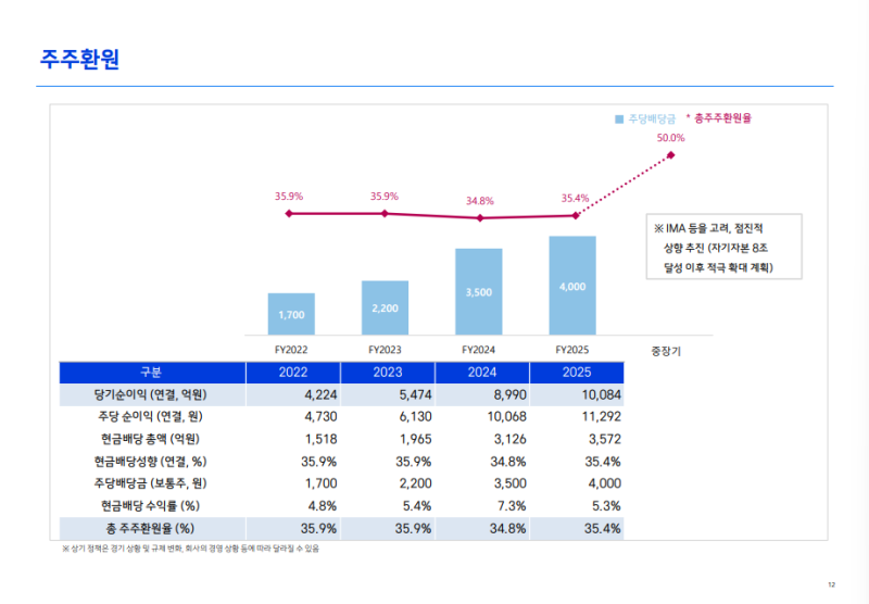 • 2025년 배당 4,000원으로 14% 증가, 배당성향 35.4%