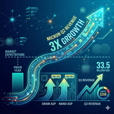 마이크론 2분기 매출 238억달러 기록…전년比 3배 성장하며 시장 예상치 상회
