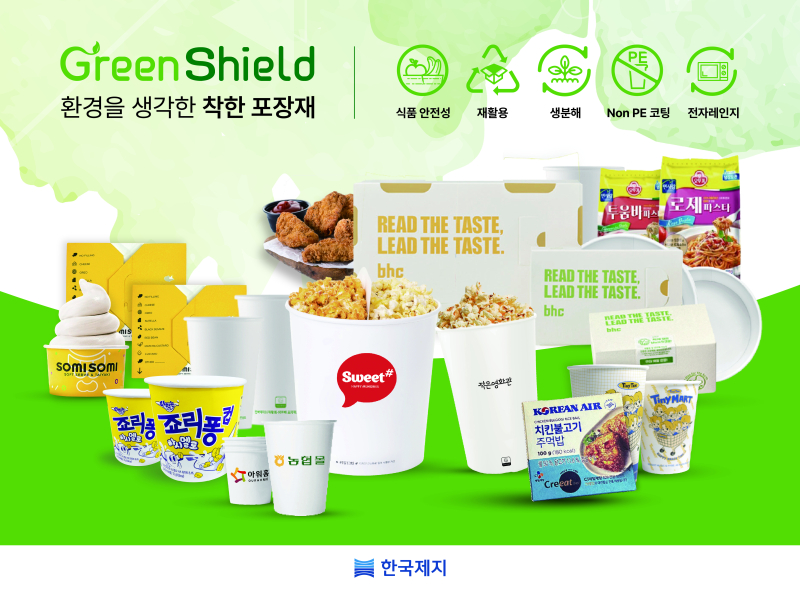 한국제지는 다양한 친환경 패키징 솔루션을 구축하고 있다. 현재 종이 자원을 활용한 패키지용지가 전체 생산량의 약 33%를 차지한다. 주요 제품으로는 친환경 포장재 '그린실드(Green-Shield)', 친환경 종이 연포장재 '지플렉스(G-Flex)', 친환경 이형지 등이 있다.
