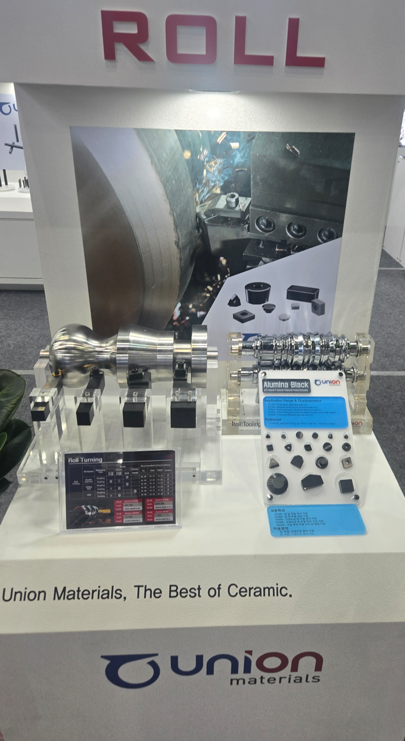 유니온머티리얼이 제작한 다양한 세라믹 절삭공구. 사진=남지완 기자