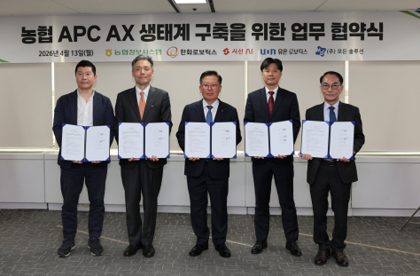 현재 전국 APC는 약 560개소다. 이 중 농협 운영 APC는 약 400개소, 한국농수산식품유통공사(aT) 등 지원 APC는 약 160개소다. 정부는 2027년까지 스마트 APC 100개소 구축을 목표로 하고 있다. 5개사는 향후 농식품 맞춤형 AMR(자율이동로봇)과 모바일 매니퓰레이터(이동형 조작 로봇) 등 스마트 농업 전반으로 협력 범위를 확대할 예정이다.