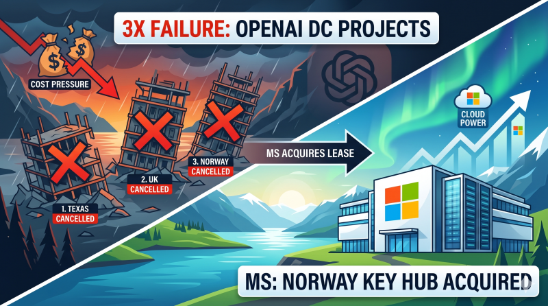 오픈AI, 비용 압박에 3연속 데이터센터 구축 무산…노르웨이 핵심 거점 MS 차지