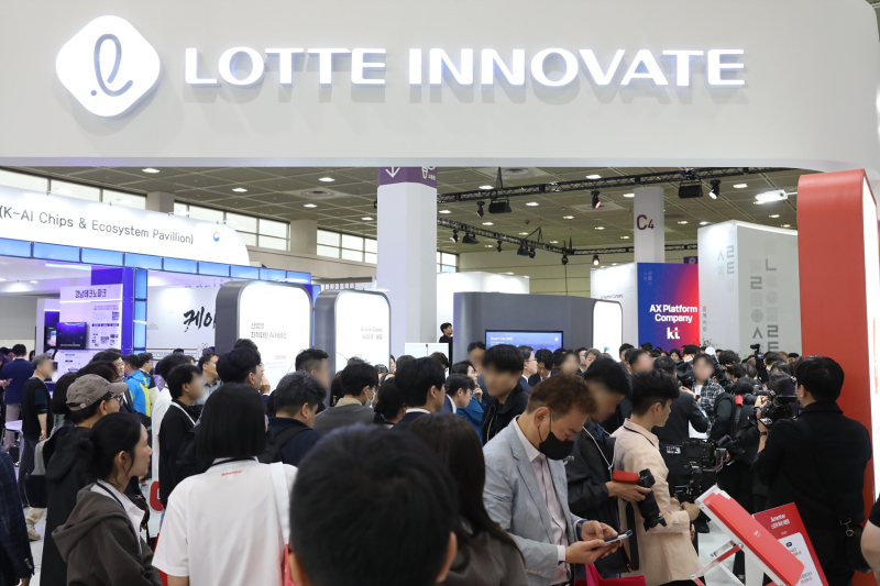 관람객으로 북적이는 2026 월드IT쇼 롯데이노베이트 부스. (사진=롯데이노베이트)
